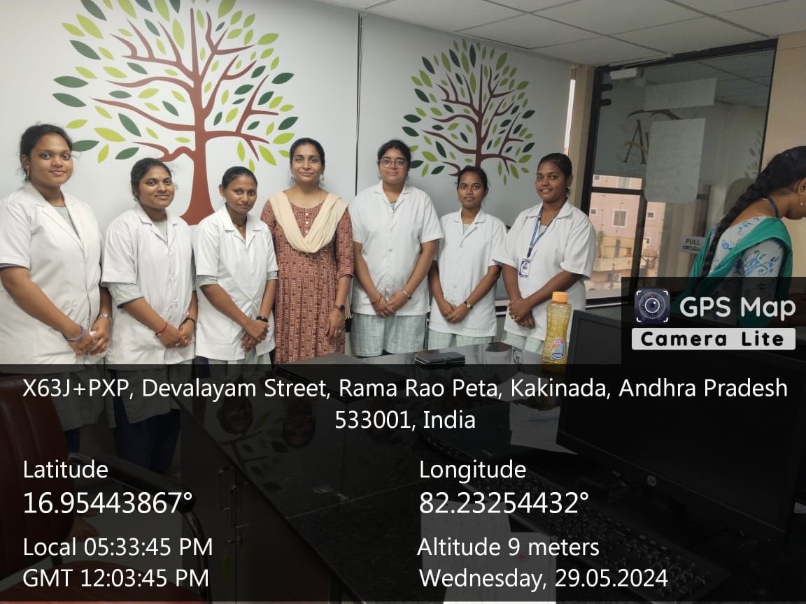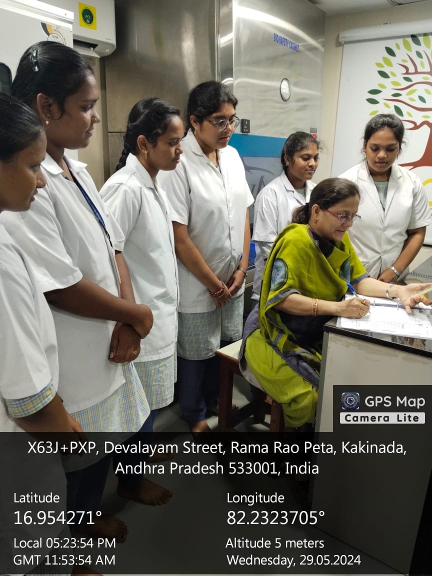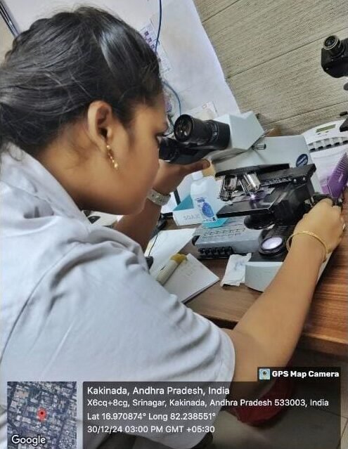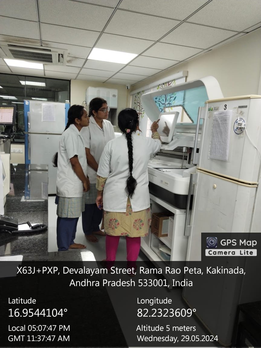 6th Semester Life Sciences students gaining hands-on experience at Satya Scans Diagnostics, Kakinada through a practical internship in diagnostic and laboratory sciences.