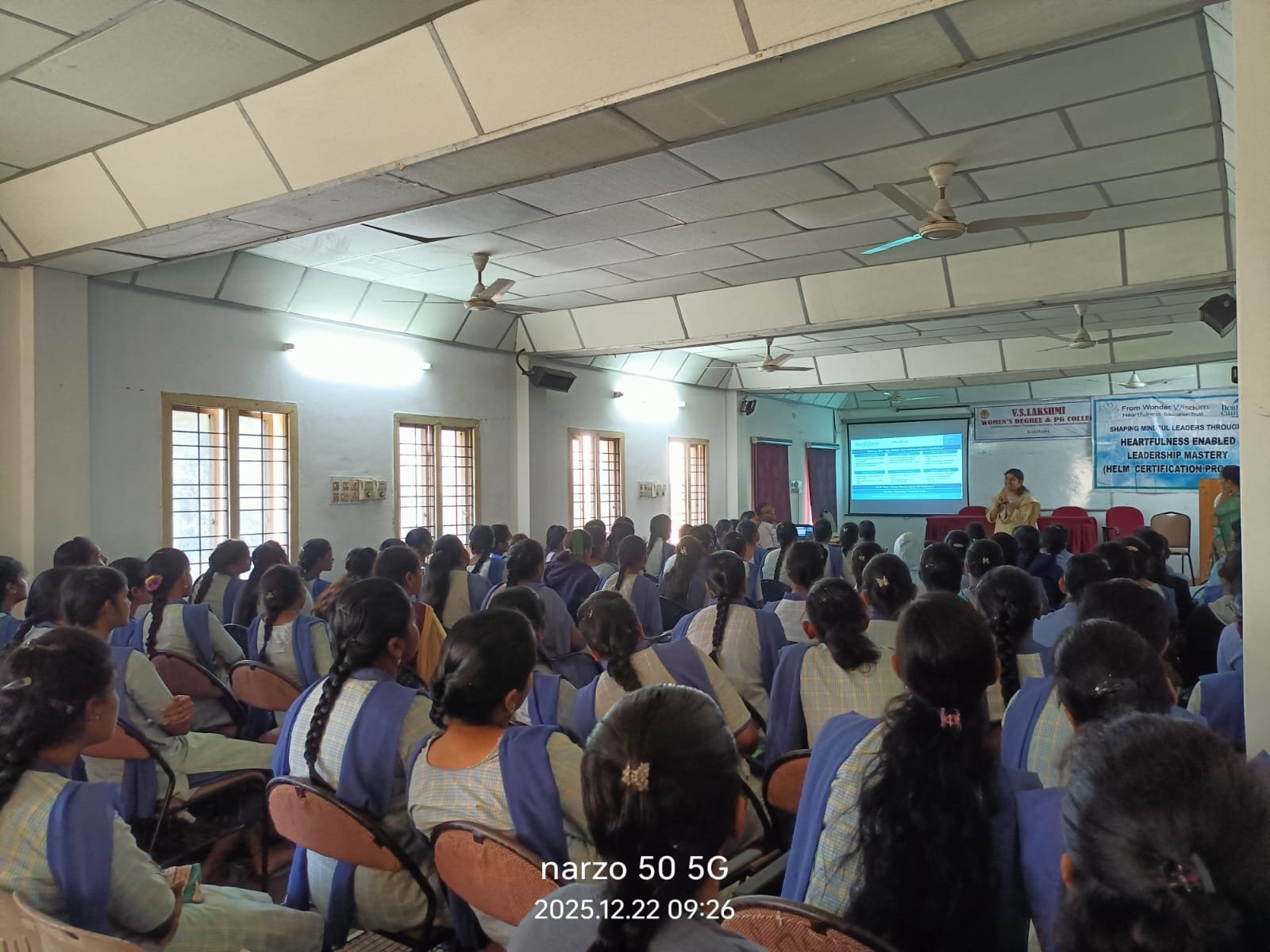 A Heartfulness meditation and leadership development programme was conducted for B.Com, BBA, and Life Sciences students.