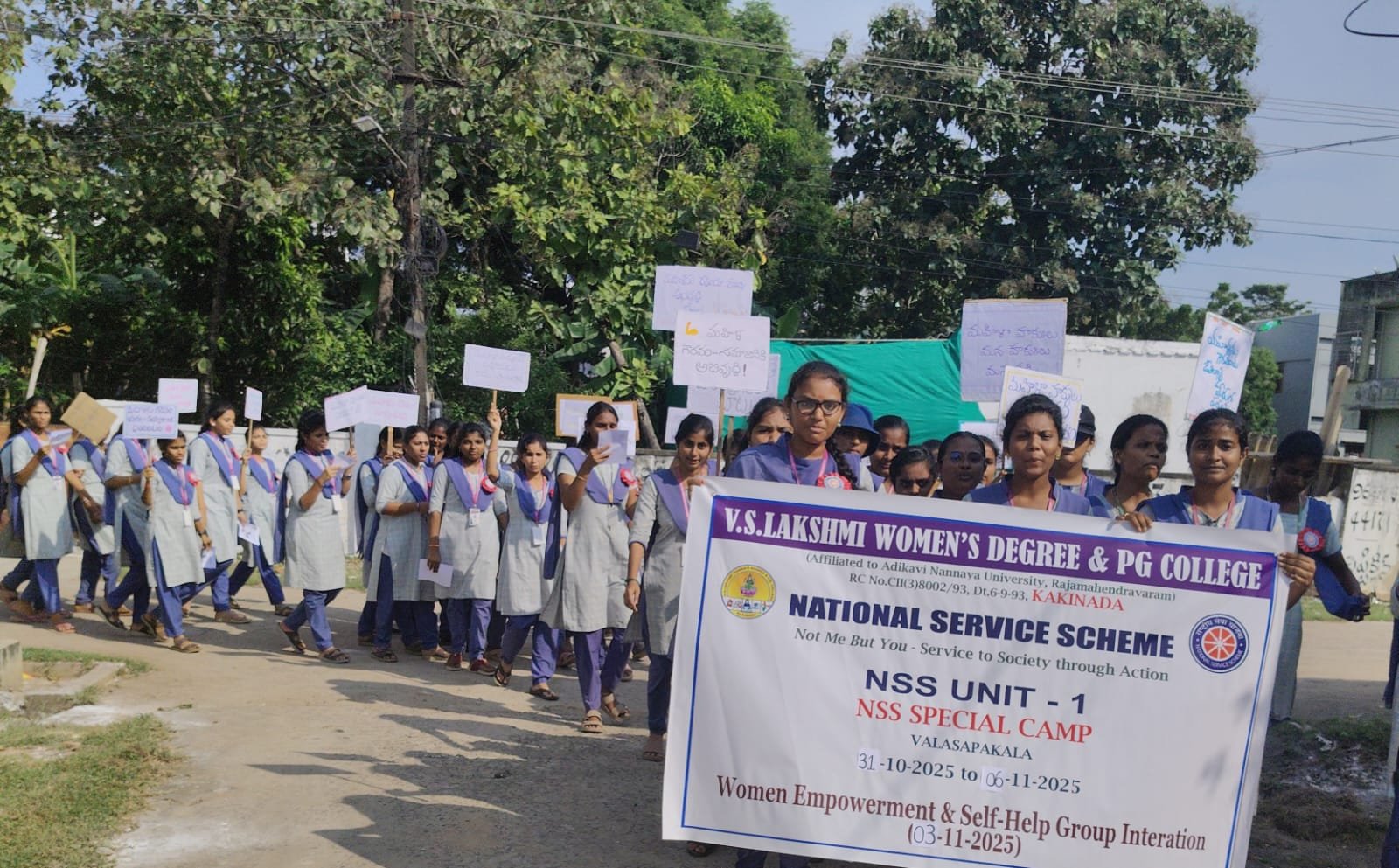 The NSS Special Camp was conducted for one week at Valasapakala village with the objective of community development, social awareness, and student engagement.