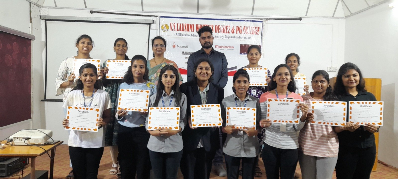 B.Com and BBA students benefited from a Tally with GST training seminar conducted by Naandi Foundation, designed to enhance their practical accounting skills and industry relevance.